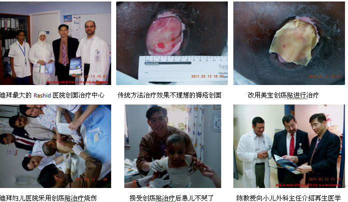 三、理論與實踐結合、培訓與示范結合,新產(chǎn)品直接到達市場終端。在新產(chǎn)品美寶創(chuàng)瘍貼的推廣發(fā)布期間,陳永翀教授先后應邀到迪拜最大的政府醫(yī)院------迪拜醫(yī)學院附屬RASHID醫(yī)院的Wound Care Center(創(chuàng)面治療中心)、迪拜婦兒醫(yī)院小兒外科、阿布扎比的Al AhlinHospital、Lipe Line Clinic向個醫(yī)院的主任、醫(yī)師和護士們介紹了美寶創(chuàng)瘍貼的再生醫(yī)學原理,分別在2例長期不愈合的褥瘡創(chuàng)面、1例小兒燒傷創(chuàng)面和1例11年長期不愈合的創(chuàng)面上講解和示范了美寶創(chuàng)瘍貼的使用方法,使大家更直觀地掌握了正確的使用方法。