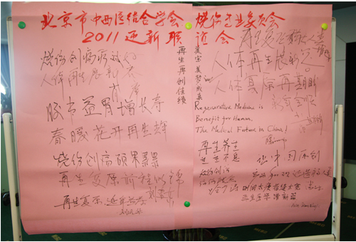 接下來委員們在留言板上留下了熱情洋溢的心里話。首先肖摩教授帶頭寫下了《燒傷創(chuàng)瘍療效好,人體再生展新容》。接下來委員們分別既表達(dá)了人體再生復(fù)原科學(xué)發(fā)展的美好祝愿——讓中國原創(chuàng)理論和產(chǎn)品造福人類;再生再創(chuàng)佳績,美寶美夢成真;再生養(yǎng)生生生不息,燒傷創(chuàng)傷傷傷愈合等。這些美好的祝福都表達(dá)了專家對人體再生復(fù)原科學(xué)應(yīng)用充滿憧憬和信心。座談會在熱烈的氣氛中結(jié)束,相信在新的一年里隨著人體再生復(fù)原科學(xué)的廣泛應(yīng)用,一定會造福更多的人群!
