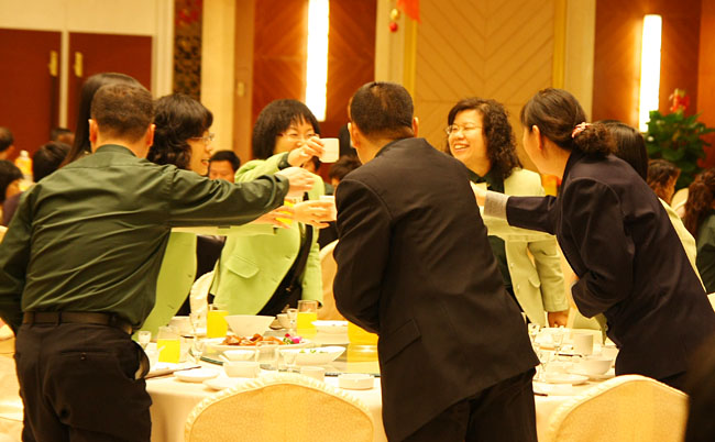 會(huì)議閉幕后,與會(huì)人員一起高舉酒杯共賀美寶再生大業(yè)。在閉幕酒會(huì)結(jié)束之際,美寶國際集團(tuán)再生大俱樂部的員工還給與會(huì)人員獻(xiàn)上了精彩的文藝節(jié)目。文藝晚會(huì)上,徐榮祥教授充滿激情地說,美寶已經(jīng)走上了一條通往美好未來的道路。接著他還為大家高歌一曲《天路》,優(yōu)美的歌聲迎來了陣陣掌聲,將晚會(huì)的氣氛推向了高潮。