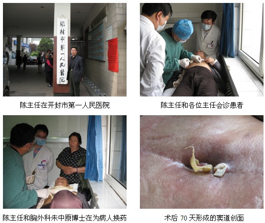 中國中西醫(yī)結(jié)合學(xué)會燒傷專業(yè)委員會委員、北京美寶燒傷創(chuàng)瘍研究所臨床部技術(shù)推廣專家陳全喜主任在2011年4月26日應(yīng)開封市第一人民醫(yī)院業(yè)務(wù)副院長、大外科主任李華強主任醫(yī)師的邀請,會診心胸外科病區(qū)心臟冠狀動脈搭橋術(shù)后刀口不愈合的1例病人。陳全喜主任會診后,給患者應(yīng)用皮膚原位再生醫(yī)療技術(shù)治療,獲得了較為滿意的療效。