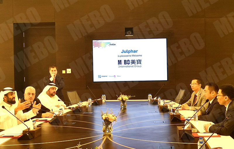 隨后,Julphar董事局主席Sheikh Saqer率副主席及高管團(tuán)隊與徐鵬主席率領(lǐng)的美寶團(tuán)隊就美寶集團(tuán)與Julphar的商務(wù)合作開展了深入的會談,回顧了2009年以來雙方在商業(yè)合作領(lǐng)域取得成就,剖析了近年來市場發(fā)展遇到的問題及挑戰(zhàn),會談達(dá)成多項共識。Sheikh Saqer向徐鵬介紹了3名新任董事會成員,他指出過去兩年多來Julphar 的發(fā)展遇到一系列問題,包括與美寶集團(tuán)及其高層之間的交流溝通,并提出了一系列的改進(jìn)措施與建議。他強(qiáng)調(diào)未來必須建立董事局級別定期溝通渠道,保證雙方合作項目的順利執(zhí)行,也對未來雙方深化合作、再次騰飛充滿了信心。徐鵬提出精誠合作、互信共贏是雙方30年來緊密合作的基礎(chǔ),雙方應(yīng)在醫(yī)藥業(yè)務(wù)加深加強(qiáng)合作外,還要加大在國際交流、國際高端學(xué)術(shù)活動、社會企業(yè)責(zé)任等領(lǐng)域的深度合作,共同打造美寶-Julphar品牌。同時也特別指出雙方需要重視并探尋美寶技術(shù)產(chǎn)品在中東及非洲地區(qū)罕見病(如先天性皮膚缺損)的應(yīng)用契機(jī)。