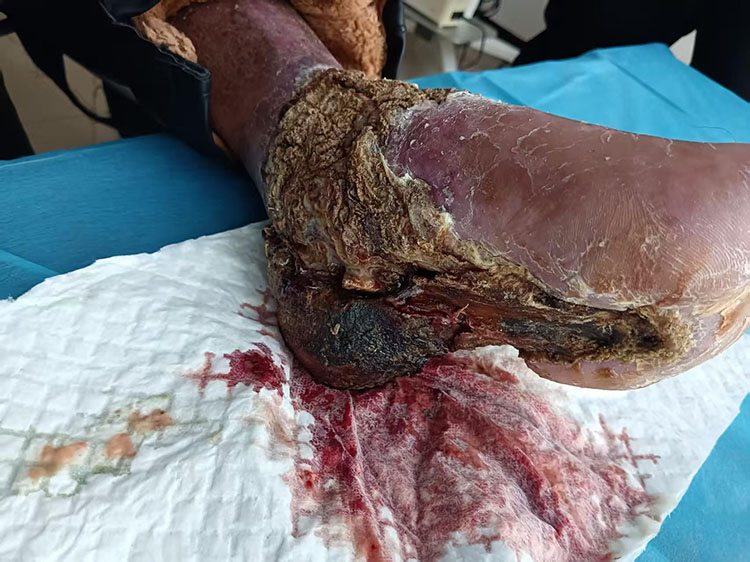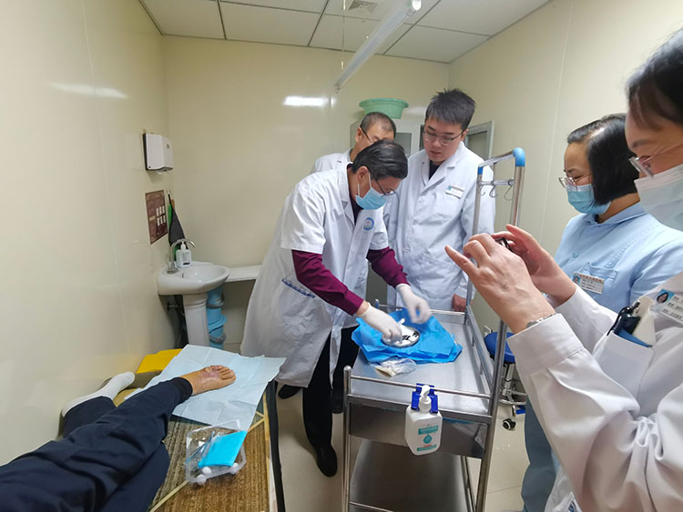 2025年4月25日,《中國(guó)燒傷創(chuàng)瘍雜志》常務(wù)編委、燒傷創(chuàng)瘍?cè)偕t(yī)療技術(shù)臨床專家趙瑞慶,到山西上黨區(qū)中醫(yī)院隨訪患者?;颊咭蚪煌ㄊ鹿蕦⒂蚁轮钻P(guān)節(jié)軟組織嚴(yán)重?fù)p傷,曾在長(zhǎng)治市某醫(yī)院治療未果,故轉(zhuǎn)回上黨區(qū)中醫(yī)院醫(yī)治,后經(jīng)趙瑞慶教授會(huì)診,制定了具體的再生、保足治療方案,經(jīng)過(guò)皮膚創(chuàng)面肉芽培養(yǎng),抗骨髓炎治療,分區(qū)域皮膚移植修復(fù),最終在4月2日康復(fù)出院。4月25日隨訪時(shí)患者,家屬對(duì)治療結(jié)果非常滿意,特別感謝徐榮祥教授教授發(fā)明的再生醫(yī)療技術(shù)保住了他的腳。