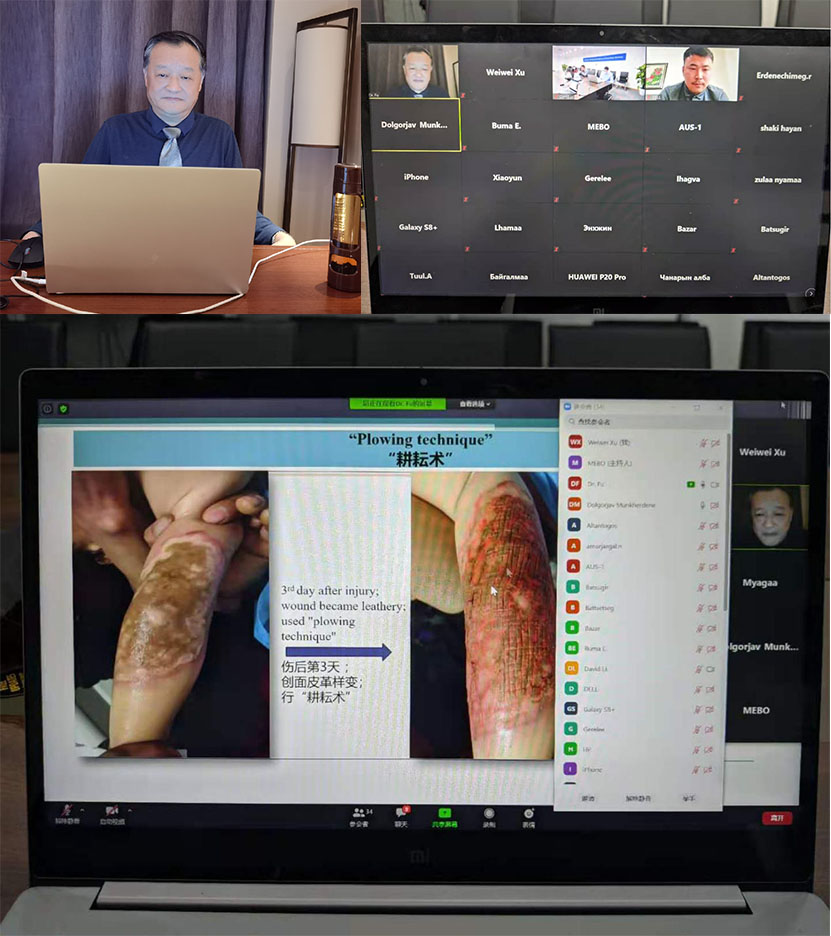 首先美寶集團蒙古國市場經(jīng)理連線會場對本次活動內(nèi)容進行了說明,隨后蒙古國市場經(jīng)理Bumaa宣布培訓活動開始。由于本次聽取授課的人員大部分為第一次接觸再生醫(yī)學療法,因此付子俊教授對再生醫(yī)學的機理、治療方法等基礎(chǔ)理論進行了深入淺出的講解。在病例分享環(huán)節(jié),付子俊教授充分展示了再生醫(yī)學針對燒燙傷、糖尿病足潰瘍、壓瘡、婦科病癥和斷指等臨床治療方法及治療效果,并著重分享了微粒皮種植配合再生醫(yī)學的應用方法,獲得參會人員一致好評。