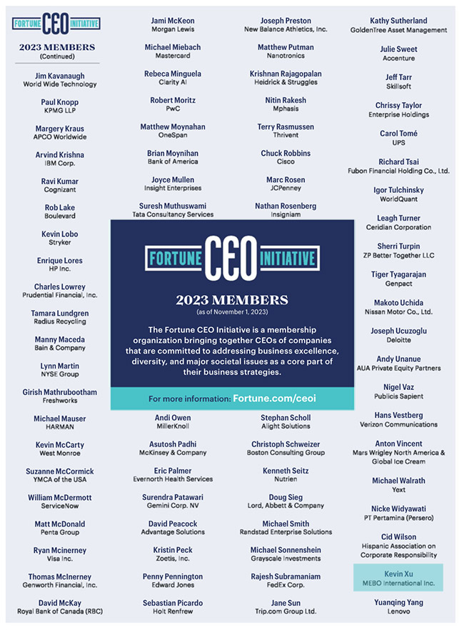 此次位列財(cái)富CEO倡議2023年名單還包括米其林、聯(lián)邦快遞、羅素、輝瑞、強(qiáng)生、諾華、聯(lián)想集團(tuán)等500強(qiáng)企業(yè)CEO。