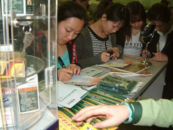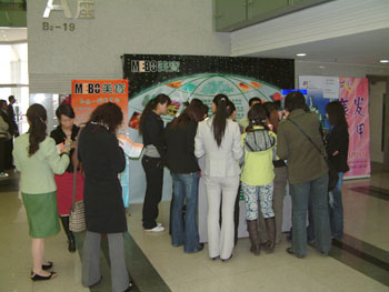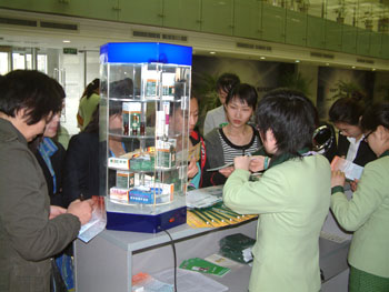 上午八時(shí),隨著上班高峰的來臨,匆匆而過的上班族被再生養(yǎng)生營銷集團(tuán)的展臺深深吸引,紛紛駐足,進(jìn)行咨詢。一時(shí)間,整個大廳里人聲鼎沸,有的先來者趴在展臺上,認(rèn)真填寫問卷調(diào)查表,同時(shí)向再生健康咨詢員詢問一些有關(guān)胃腸的健康問題;有的性急者看到展臺由于人多沒地方填寫調(diào)查表,就干脆以同伴的后背為墊板開始填寫;有的圍在旋轉(zhuǎn)產(chǎn)品展臺前觀看產(chǎn)品,興奮的討論、咨詢。有幾個年齡大點(diǎn)的客戶不只自己咨詢胃腸健康問題,還把同伴介紹過來詢問,再生養(yǎng)生營銷集團(tuán)的一線人員熱情地給予了解答。