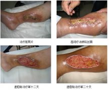 病人叫孫××,現(xiàn)年64歲,是鄭州市中原區(qū)構(gòu)趙鄉(xiāng)孫莊村人。老人說:“我患的深部靜脈炎十三年前在河南省××醫(yī)院做的手術(shù),術(shù)后每年這地方都流水,到省××醫(yī)院住20天就好。每年到陰歷11月份就開始,形成規(guī)律了。今年又爛了,我又到省××醫(yī)院住院花了四萬多住院治療,這一回治療了四個月零三天,還做了一回手術(shù),還是長不住口。我老頭是個村醫(yī),今年春上在鄉(xiāng)里聽陳專家講課后,我從省××醫(yī)院出院來到中原醫(yī)院燒傷科治療。我是陰歷3月16日住院的,今天是陰歷4月14日,住院28天,腿就好了。”說著她從病床上下來走了走,“好了,一點(diǎn)也不痛了。”并讓我們看了看創(chuàng)面。她說:“我花了醫(yī)療費(fèi)9600元治好了我的腿,我感謝中原醫(yī)院的醫(yī)生,感謝美寶速愈貼的好療效。”