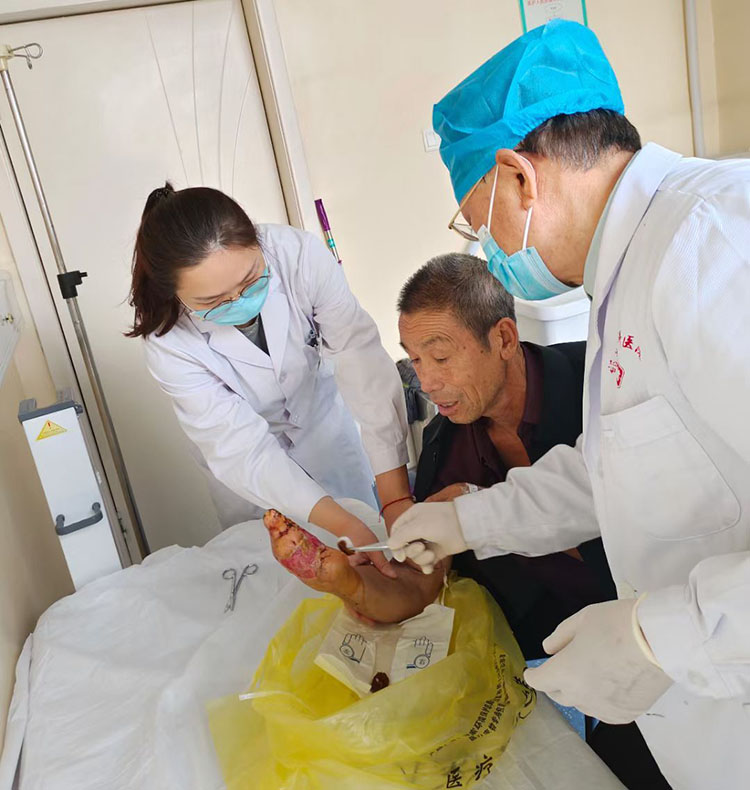 11月9日,應(yīng)邯鄲市骨科醫(yī)院之邀,《中國燒傷創(chuàng)瘍雜志》常務(wù)編委、燒傷創(chuàng)瘍再生醫(yī)療技術(shù)臨床專家趙瑞慶,在該院會(huì)診了三例慢創(chuàng)患者。事后在醫(yī)辦室進(jìn)行了個(gè)案分析,制定進(jìn)一步治療計(jì)劃。趙教授針對糖足潰瘍講解了各種類糖足潰瘍的治療方法,肖主任深表感謝并表示,正當(dāng)病人治療困難時(shí),專家?guī)砹嗽偕t(yī)療技術(shù)規(guī)范操作的演示,又在理論上武裝了醫(yī)護(hù)人員頭腦,為今后科室的工作打下了堅(jiān)實(shí)基礎(chǔ)。