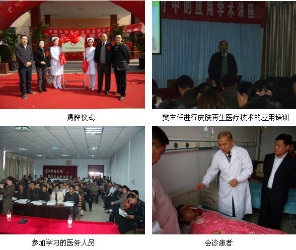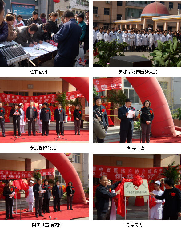 2010年4月8日,經(jīng)中國中西醫(yī)結(jié)合學(xué)會燒傷專業(yè)委員會審核批復(fù)的“中國中西醫(yī)結(jié)合學(xué)會燒傷專業(yè)委員會廣平縣燒傷創(chuàng)瘍治療基地”在河北省廣平縣人民醫(yī)院舉行了隆重的揭牌儀式。廣平縣縣委領(lǐng)導(dǎo)及衛(wèi)生局領(lǐng)導(dǎo)到會參加了揭牌儀式并發(fā)表了講話,對此次廣平縣醫(yī)院引進(jìn)皮膚再生醫(yī)療技術(shù)并建立廣平縣燒傷創(chuàng)瘍治療基地給予了充分的肯定,并表示縣委及衛(wèi)生局會大力支持此項造福民生的工作。儀式還邀請了中國中西醫(yī)結(jié)合學(xué)會燒傷專業(yè)委員會常委樊兆宗主任及河北片區(qū)主任王琳琳,樊主任宣讀了中國中西醫(yī)結(jié)合學(xué)會燒傷專業(yè)委員會關(guān)于建立廣平縣醫(yī)院燒傷創(chuàng)瘍治療基地的批復(fù)文件。此次活動還邀請了周邊縣的縣鄉(xiāng)鎮(zhèn)醫(yī)院的領(lǐng)導(dǎo)及主任參加觀摩,并邀請樊兆宗主任在儀式結(jié)束后進(jìn)行了“皮膚再生醫(yī)療技術(shù)的應(yīng)用”的培訓(xùn)講座。此次活動取得了圓滿的成功,廣平縣電視臺等多家媒體也給予了廣泛的報道。