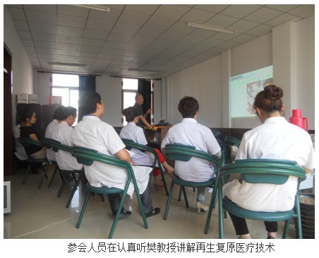 遼寧省朝陽市糖尿病醫(yī)院是遼西地區(qū)頗具規(guī)模的糖尿病??漆t(yī)院,每年接診患者萬余人次。在該院邢光明院長的邀請下,中國中西醫(yī)結(jié)合學(xué)會燒傷專業(yè)委員會樊兆宗教授來到朝陽,于2012年8月24日下午,在該院的會議室里舉行了人體再生復(fù)原科學(xué)暨皮膚創(chuàng)面修復(fù)的多科室應(yīng)用講座,會議由該院趙玉彩副院長主持,除值班外的全體醫(yī)護人員參加了這次講座。樊教授系統(tǒng)闡述了皮膚原位再生修復(fù)的理論,并針對糖尿病臨床治療中常見的皮膚潰瘍和褥瘡的護理要點和再生醫(yī)療技術(shù)的操作規(guī)范進行了重點的講解。報告內(nèi)容深入淺出,密切結(jié)合臨床,讓與會人員深感受益匪淺,紛紛表示這種簡單易行又療效不凡的方法,將會很好地解決那些久治不愈的皮膚創(chuàng)面的難題,為此類患者的治療帶來福音。