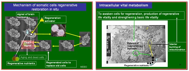 再生生命的產(chǎn)生由以下兩部分組成:其一、再生物質(zhì)對再生生命的“啟動”:當(dāng)組織器官的細胞出現(xiàn)纖維化、疾病、凋亡和異變時,除細胞釋放死亡信息激活潛能再生細胞外,尚需再生物質(zhì)對細胞再生生命活力的啟動,因再生物質(zhì)不能從日常飲食中直接獲得,所以人類從來沒有表達過再生生命活力。凡是攝入再生物質(zhì),啟動了再生程序后,人體就會產(chǎn)生再生生命。再生生命啟動的標(biāo)志是細胞新功能的出現(xiàn),潛能再生細胞一旦產(chǎn)生主體生理功能,就意味著人體同時具備了再生生命功能,再生生命不僅是潛能生命體具有,基本生命體也具有(請參閱“人體再生復(fù)原科學(xué)養(yǎng)生的生命機理”)(2011年《中國燒傷創(chuàng)瘍雜志》第2期,第99頁)。其二、再生物質(zhì)對再生生命的“維持”:潛能生命體和基本生命體再生生命的啟動和維持,同樣需要各種營養(yǎng)物質(zhì),除需要基本營養(yǎng)(物質(zhì))外,更重要的是需要再生營養(yǎng)(物質(zhì))的持續(xù)供給,使再生潛能細胞發(fā)揮應(yīng)有的功能。一方面該類細胞的生理功能被啟動并獲得充分發(fā)揮,另一方面可以保證隨時能夠再生出新的生命體替換、更新組織器官中纖維化、疾病、凋亡和異變的細胞,這也是再生復(fù)原后人體表達出“精、氣、神、力”持續(xù)旺盛的重要原因之一。我們吃的營養(yǎng)物質(zhì)進入到細胞里,一部分營養(yǎng)物質(zhì)的成分被釋放,一部分進入線粒體,線粒體就能夠產(chǎn)生大量的能量,使人的精、氣、神、力就旺盛起來。這兩個部分組成了再生生命。
