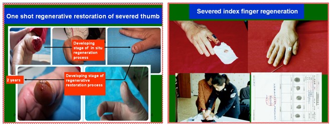 在臨床實踐中,我們用再生物質(zhì)已經(jīng)啟動了皮膚等多器官組織缺損的再生復(fù)原,所以用再生物質(zhì)也能啟動和培養(yǎng)各器官的再生,這就又形成了新的生命定律。