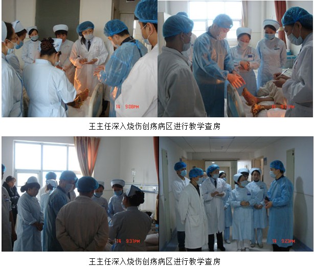 2013年4月15日上午9時,王主任應(yīng)邀再次來到該醫(yī)院燒傷創(chuàng)瘍手外科病房對在該科室住院的燒傷創(chuàng)瘍患者進行教學(xué)查房,并應(yīng)邀親自為1例雙足及小腿深度燒傷患者進行清創(chuàng)換藥,向該科室的醫(yī)護人員展示再生醫(yī)療技術(shù)規(guī)范的創(chuàng)面清創(chuàng)換藥技術(shù),帶教結(jié)束后,王主任在該科室會議室又對該科室的醫(yī)護人員進行再生復(fù)原療法在特重度燒傷系統(tǒng)治療要點進行技術(shù)培訓(xùn)和交流。通過此次培訓(xùn),該科室的全部醫(yī)護人員基本掌握了再生醫(yī)療技術(shù)的規(guī)范化操作,對該科室的發(fā)展起到了重要作用。