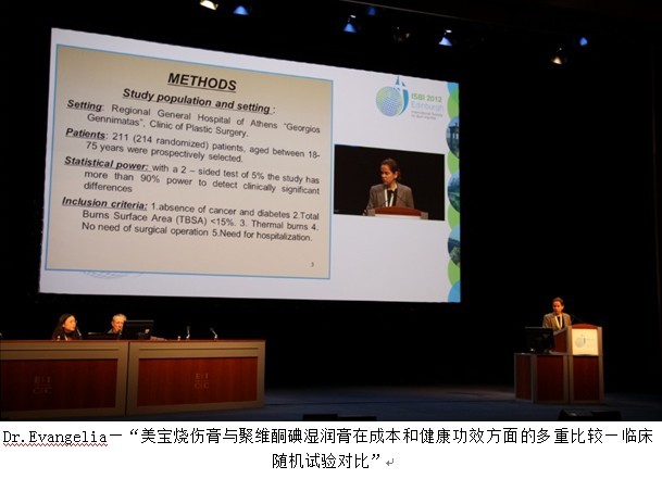 最后壓軸出場(chǎng)的是來(lái)自希臘的燒傷治療專家Dr.Evangelia Tsati,她以“Comparing cost and multiple health outcomes between oil baded ointment and povidone iodine plaus moisturizing cream under different aspects: A pragmatic Randdomized Trial”為題介紹自己參與的在希臘進(jìn)行的多中心臨床對(duì)比試驗(yàn),演講包含了大量的對(duì)比數(shù)據(jù)和科學(xué)論證,從治愈時(shí)間、治療便捷性、病人痛苦程度、治療費(fèi)用等多個(gè)方面進(jìn)行了詳細(xì)的對(duì)比闡述,結(jié)果顯示美寶在病人愈合時(shí)間、住院時(shí)間以及整體花費(fèi)上全部?jī)?yōu)于對(duì)照組!由于時(shí)間問(wèn)題,她沒(méi)法答疑,但是會(huì)后作為唯一的女性演講者,她獲得了所有專題會(huì)聽(tīng)眾最高的評(píng)價(jià)—“科學(xué)和完美的演講”!