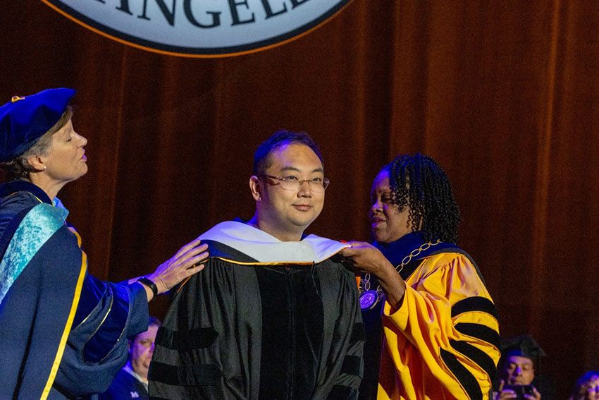 2025年5月20日,加州州立大學洛杉磯分校(Cal State LA)畢業(yè)典禮盛大舉行,美寶集團董事局主席徐鵬被授予人文文學榮譽博士學位,以表彰其通過科技創(chuàng)新與全球慈善事業(yè)對醫(yī)療健康及教育領域的卓越貢獻。校長貝蕾妮絲·約翰遜·伊恩斯親自為其頒發(fā)學位證書,徐鵬更是作為畢業(yè)典禮主題演講嘉賓,向逾5500名畢業(yè)生分享人生洞見。