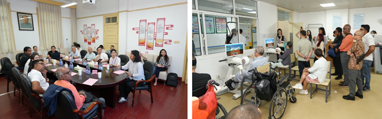 9月17日,代表團(tuán)訪問(wèn)了湖南省人民醫(yī)院馬王堆院區(qū)康復(fù)醫(yī)學(xué)科??祻?fù)醫(yī)學(xué)科主任蔡華安、學(xué)科建設(shè)辦干事左盼對(duì)代表團(tuán)的到訪表示熱烈歡迎??祻?fù)醫(yī)學(xué)科三病區(qū)醫(yī)療組組長(zhǎng)黃靚博士系統(tǒng)介紹了再生醫(yī)療技術(shù)在治療壓瘡等慢性難愈合創(chuàng)面中的應(yīng)用優(yōu)勢(shì),并結(jié)合臨床案例,生動(dòng)展示了該項(xiàng)技術(shù)的顯著療效。分享結(jié)束后,代表團(tuán)走進(jìn)康復(fù)醫(yī)學(xué)科病房進(jìn)行實(shí)地參觀。代表團(tuán)成員對(duì)科室將創(chuàng)面管理與康復(fù)治療緊密結(jié)合的治療模式深表贊賞,紛紛表示回國(guó)后將借鑒這一理念,推動(dòng)創(chuàng)面管理與康復(fù)治療的融合,以提升患者的治療效果與體驗(yàn)。