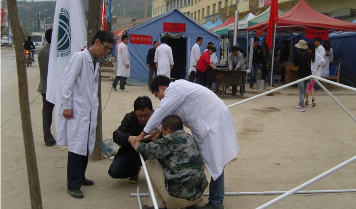 柳佰富主任率15人的抗震救災(zāi)醫(yī)療隊(duì)于當(dāng)日22點(diǎn)從蘭州緊急出發(fā),經(jīng)過六個(gè)多小時(shí)連夜兼程,于23日凌晨四點(diǎn)多到達(dá)災(zāi)區(qū)。顧不上一路的奔波與勞累,顧不上一口飯一口水,總想著以最快的速度,將最便捷的方法、最有效的技術(shù)帶給那些等待救治的傷者。