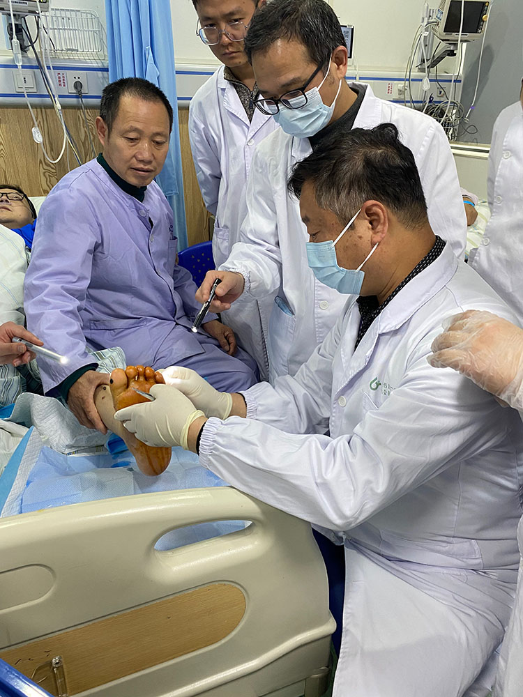 3月25日,應(yīng)湖北省孝感市云夢縣人民醫(yī)院內(nèi)分泌科彭曉群護(hù)士長邀請,《中國燒傷創(chuàng)瘍雜志》編委、燒傷創(chuàng)瘍再生醫(yī)療技術(shù)臨床專家張強(qiáng),到該院會(huì)診病人,對三例糖尿病足患者運(yùn)用再生醫(yī)療技術(shù)處理創(chuàng)面給予細(xì)節(jié)講解,此次活動(dòng)受到大家贊賞。