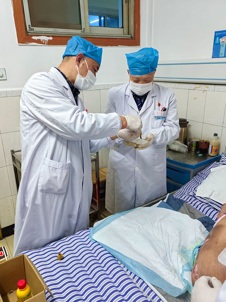 2024年3月18日,應(yīng)武漢市第五醫(yī)院主任創(chuàng)面修復(fù)與血管外科楊銳主任邀請,《中國燒傷創(chuàng)瘍雜志》編委、燒傷創(chuàng)瘍再生醫(yī)療技術(shù)臨床專家張強(qiáng),來到病房現(xiàn)場教學(xué)查房、會(huì)診了多例糖尿病慢性潰瘍患者,張主任仔細(xì)查看每個(gè)患者創(chuàng)面、深入了解病人全身狀況及治療情況后,同楊主任及管床醫(yī)師一起討論病情,并演示再生醫(yī)療技術(shù)臨床規(guī)范換藥流程,根據(jù)不同病情制定不同治療方案。得到醫(yī)護(hù)人員與患者家屬的高度稱贊!會(huì)診后又同楊主任就科室建設(shè)進(jìn)行了深入探討。楊主任對張主任會(huì)診毫無保留的分享表示衷心的感謝!他表示以后將進(jìn)一步發(fā)展和壯大創(chuàng)面修復(fù)科室建設(shè),讓患者受益!