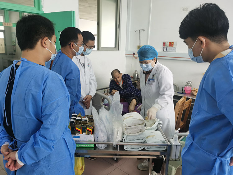 3月23日,來自廣州、佛山兩地的五家醫(yī)院13位專家,到韶關(guān)第一人民醫(yī)院燒傷和創(chuàng)面修復(fù)科,以查房的形式現(xiàn)場觀摩該科室規(guī)范應(yīng)用燒傷創(chuàng)瘍再醫(yī)療技術(shù)處理糖尿病足潰瘍、壓瘡創(chuàng)面,隨后在科室會(huì)議室對慢性創(chuàng)面的相關(guān)典型病例進(jìn)了深入的探討與交流??剖谊愔魅尉吞悄虿∽惚W阒委熥隽酥攸c(diǎn)分析和介紹。通過參觀交流,與會(huì)專家表示未來一定將燒傷創(chuàng)瘍再生醫(yī)療技術(shù)規(guī)范應(yīng)用于慢性創(chuàng)面的臨床治療之中,提高慢創(chuàng)的治療水平,為當(dāng)?shù)氐穆齽?chuàng)患者減輕病痛。