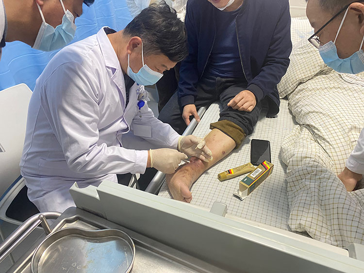張強教授應(yīng)湖北省宜昌市夷陵人民醫(yī)院邀請,會診一例右腳底三度燒傷患者