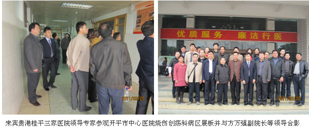 通過(guò)對(duì)開(kāi)平市中心醫(yī)院、廣州市中西醫(yī)結(jié)合醫(yī)院兩家醫(yī)院的參觀交流后,桂平市中醫(yī)醫(yī)院的韋國(guó)雨副院長(zhǎng)、大骨科主任黎小琳、大外科主任黎海都表示要立即把燒傷創(chuàng)瘍科組建起來(lái),把燒傷再生醫(yī)學(xué)與療法相關(guān)技術(shù)應(yīng)用到各類(lèi)燒傷及難愈性創(chuàng)面的治療中,以造福180萬(wàn)桂平人民。