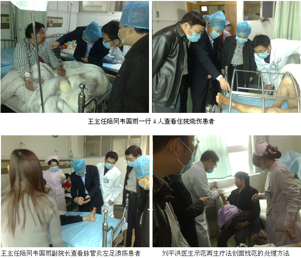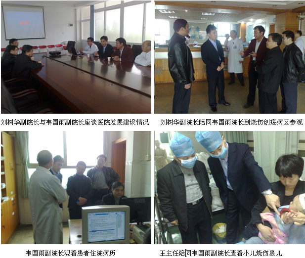 2011年3月21日上午9時(shí)30分,桂平市中醫(yī)院的韋國(guó)雨副院長(zhǎng)、大骨科主任黎小琳副主任醫(yī)師、大外科主任黎海副主任醫(yī)師等4人在王洪生主任陪同下來(lái)到廣州市中西醫(yī)結(jié)合醫(yī)院參觀交流,廣州市中西醫(yī)結(jié)合醫(yī)院主管副院長(zhǎng)劉樹(shù)華副主任醫(yī)師、大外科主任張向東副主任醫(yī)師親自到醫(yī)院大門(mén)迎接。韋國(guó)雨一行首先在劉樹(shù)華副院長(zhǎng)及張向東主任的陪同下來(lái)到該醫(yī)院住院大樓6樓燒傷創(chuàng)瘍科參觀,主治醫(yī)師劉平洪帶領(lǐng)大家深入燒傷創(chuàng)瘍病房,查看正在該科住院的燒傷、脈管炎合并下肢潰瘍、褥瘡、糖尿病足等患者,并親自為患者換藥示范皮膚原位再生復(fù)原醫(yī)療技術(shù)規(guī)范的創(chuàng)面處理技術(shù)。查房結(jié)束后,韋國(guó)雨副院長(zhǎng)一行又來(lái)到該院門(mén)診四樓小會(huì)議室,進(jìn)行座談交流,在座談會(huì)上,首先劉樹(shù)華副院長(zhǎng)介紹了該院的整體發(fā)展情況,隨后劉平洪主治醫(yī)師著重介紹了這幾年運(yùn)用皮膚原位再生復(fù)原醫(yī)療技術(shù)治療大面積深度燒傷及糖尿病足等難愈性創(chuàng)面典型臨床病例資料。在座談會(huì)結(jié)束后,韋國(guó)雨副院長(zhǎng)對(duì)劉樹(shù)華副院長(zhǎng)地?zé)崆榻哟硎玖酥孕母兄x,他說(shuō),我們廣東、廣西同飲一江水,希望以后進(jìn)一步加強(qiáng)兩院之間的交流,以增進(jìn)友誼,相互學(xué)習(xí),相互借鑒好的技術(shù),共同發(fā)展,共同提高。