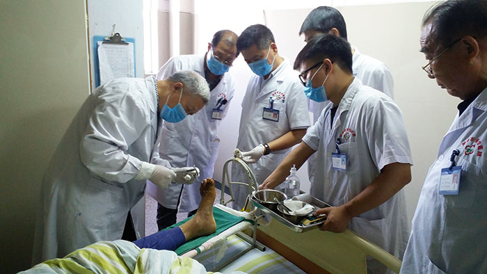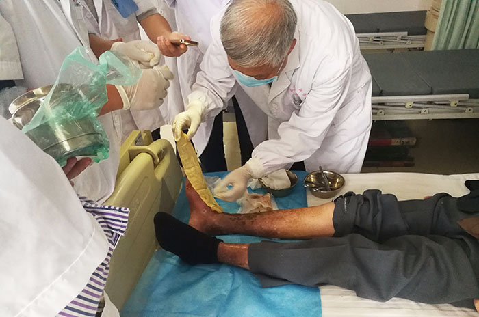 9月29日,中國中西醫(yī)結(jié)合燒傷專業(yè)委員會副主任委員、南通市第三人民醫(yī)院燒傷整形美容科趙賢忠主任,應江都市中醫(yī)院的邀請,在該院舉辦了再生醫(yī)療技術(shù)在難愈創(chuàng)面中應用的學術(shù)交流會。該院普外科、肛腸科、內(nèi)科、骨科、皮膚科、護理部等以及部分周邊醫(yī)院的醫(yī)護人員積極參會。會后,趙主任到臨床進行了會診,就現(xiàn)有的糖尿病足、靜脈曲張引起的潰瘍、抽煙引起的血管堵塞等病例進行了分析指導,并給出了相應的治療方案,得到了全體醫(yī)護人員及病人家屬的高度認可!