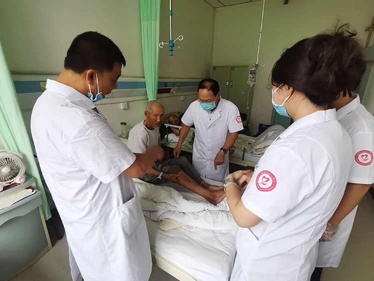 8月28日,《中國燒傷創(chuàng)瘍雜志》常務編委、燒傷創(chuàng)瘍再生醫(yī)療技術臨床專家趙瑞慶,在該醫(yī)院會診了9例慢瘡患者(糖足潰瘍2例,壓瘡4例,會陰部深筋膜感染1例,臀部深筋膜感染1例,下肢外固定皮膚感染1例),并針對每例患者制定出個性化的治療方法,受到當?shù)蒯t(yī)務人員及家屬的熱情稱贊。