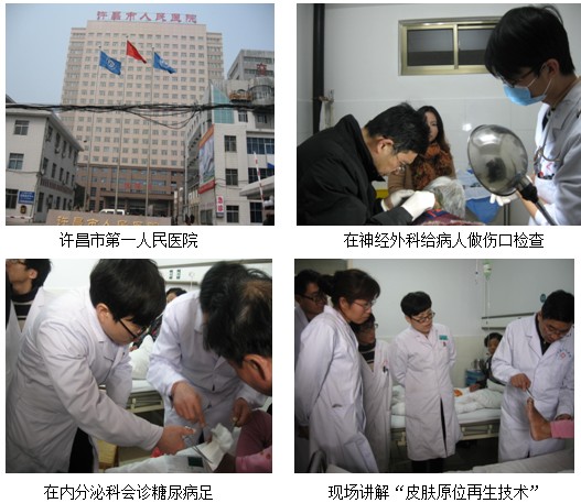 春寒加著散落的雪花,中國中西醫(yī)結(jié)合學(xué)會燒傷專業(yè)委員會委員、北京美寶燒傷創(chuàng)瘍研究所臨床部推廣技術(shù)專家陳全喜主任和區(qū)域經(jīng)理葛艷艷受許昌市第一人民醫(yī)院神經(jīng)外科邀請來院指導(dǎo) “人體皮膚原位再生”產(chǎn)品——創(chuàng)瘍貼臨床應(yīng)用情況。