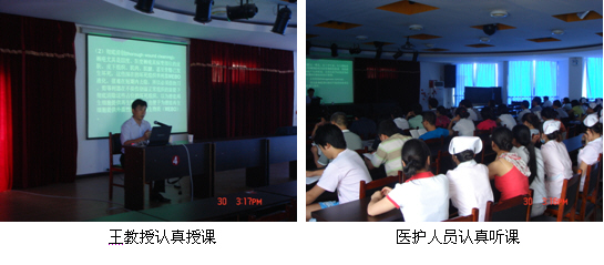 培訓(xùn)班于當(dāng)天下午14:30正式開始,該院楊院長全程主持了會議。在培訓(xùn)會上,王教授利用大量的臨床圖片資料和影像資料深入淺出地向大家介紹了再生復(fù)原療法在難愈性創(chuàng)瘍創(chuàng)面治療的新進展;不同深度、不同原因燒傷創(chuàng)面的臨床規(guī)范化處理;大面積燒傷的全身綜合治療及護理,針對不同程度的燒傷創(chuàng)面、潰瘍創(chuàng)面進行了詳細地講解。通過王教授生動地講授,到會的醫(yī)護人員都對再生醫(yī)療技術(shù)所取得的治療效果感到驚嘆,此次學(xué)術(shù)培訓(xùn)會對該市以后開展再生醫(yī)療技術(shù)打下了基礎(chǔ),起到了較好地推廣作用。