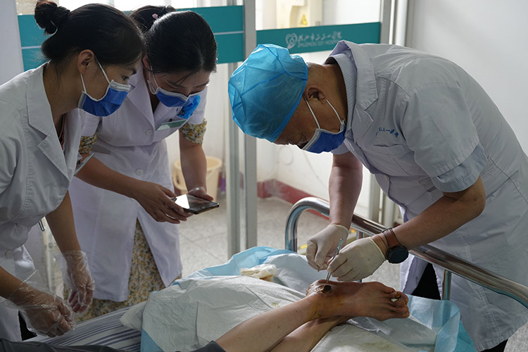 金黨軍主任到株洲三三一醫(yī)院會診糖足患者