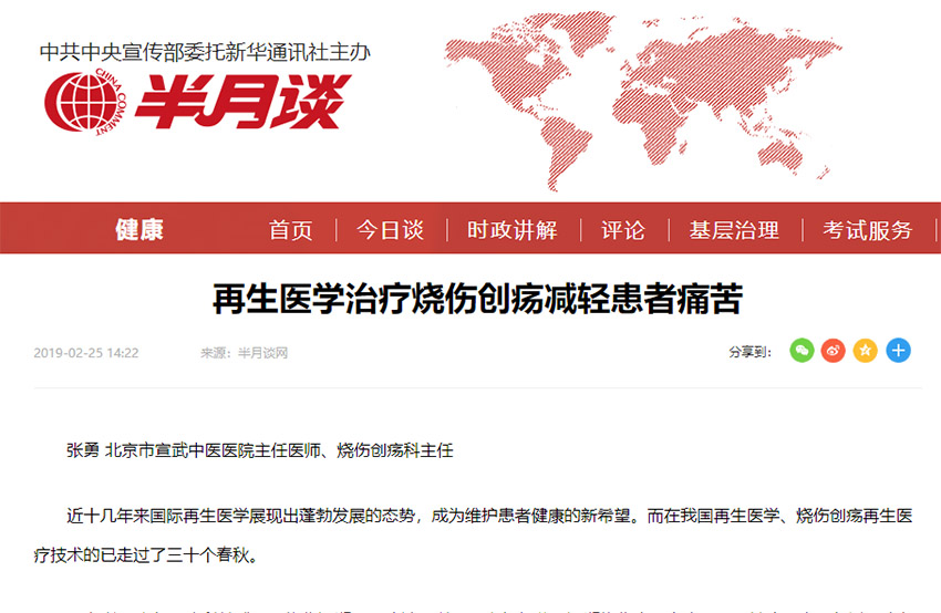 “再生醫(yī)學日”前夕,《半月談》發(fā)表北京宣武中醫(yī)醫(yī)院張勇文章紀念燒傷創(chuàng)瘍再生醫(yī)療技術(shù)三十周年......