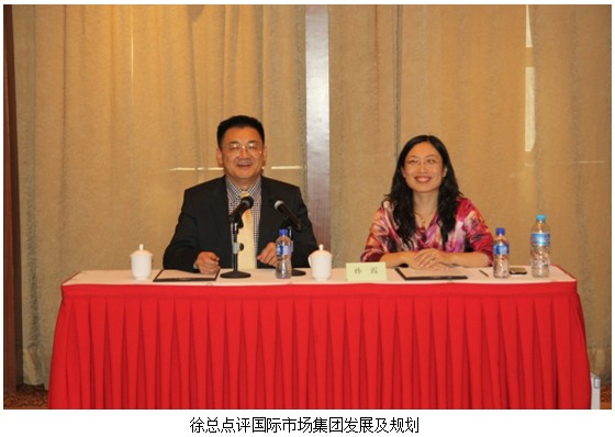 徐總說道,國際市場集團三年來飛速發(fā)展,同時每一名員工都伴隨著企業(yè)取得了長足的成長,擔負起除美國外整個海外國際市場的經(jīng)營發(fā)展重任。北京總部連同海外多家分公司、組織機構,如今已經(jīng)成為大集團下最為重要的集團之一。徐總的點評讓整個集團的員工士氣高漲,信心倍增,相信只要我們能夠堅定不移地遵從徐總的“大科學、大經(jīng)濟、大發(fā)展”戰(zhàn)略決策,團結(jié)一致,奮力拼搏,2012年國際市場集團將與大集團一同發(fā)展得越來越好,飛的越來越高!