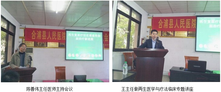 專題學術講座于當日下午三點在該醫(yī)院會議室舉行,其外四科主任(燒傷外科)陳善偉主任醫(yī)師主持了會議。該院燒傷科,骨科,普外科,腫瘤科、內科,皮膚科和婦產(chǎn)科的相關專業(yè)80余名專家及醫(yī)護人員參加了學術會議。在專題學術講座中,王主任結合了大量的臨床病例圖片,針對各類難愈性創(chuàng)傷、潰瘍創(chuàng)面的規(guī)范化處理方法與技巧、注意事項等進行了細致的講解,并著重對糖尿病足和褥瘡做了重點講解。在會的醫(yī)護人員看到大量真實的臨床病例資料圖片后,都被再生醫(yī)療技術良好的治療效果所震撼與折服。雖然其醫(yī)院在燒傷創(chuàng)面上一直使用再生復原療法,但在其他的創(chuàng)面上還是第一次接觸全新的治療方法。會后其外科帶頭人黃江副院長還親自向王主任進行了請教,并表示希望王主任多多來院指導。