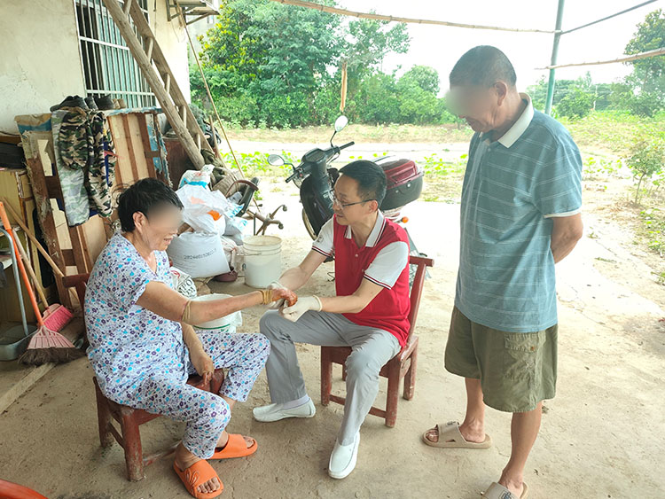 為推動黨史學(xué)習(xí)教育走深走實(shí),扎實(shí)開展"我為群眾辦實(shí)事"實(shí)踐活動,2025年6月18日,湖北宜昌“枝江市人民醫(yī)院臨床外科黨支部燒傷慢創(chuàng)防治先鋒隊(duì)”“枝心護(hù)理服務(wù)團(tuán)隊(duì)“甲乳燒傷外科李翔主任,余春子護(hù)士長和徐榮祥再生生命公益基金志愿者杜繼,到訪問安鎮(zhèn)新建村等,進(jìn)行入戶隨訪,延伸醫(yī)療關(guān)愛。護(hù)士長為胡奶奶做了日常營養(yǎng)及皮膚保養(yǎng)等生活指導(dǎo)。裴阿姨講了很多生活感悟,大家鼓勵她及家人增強(qiáng)信心,以積極的心態(tài)去應(yīng)對疾病和生活。此次延伸活動患者的滿意笑容,大家更加深刻地體會到,作為醫(yī)務(wù)工作者的社會責(zé)任和志愿服務(wù)所帶來的充實(shí)與快樂。