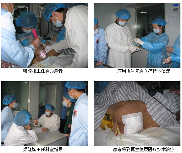 通過這次學(xué)術(shù)交流取得了很好的反響,會后很多參會者主動向梁主任咨詢再生復(fù)原醫(yī)療技術(shù)相關(guān)事宜,梁主任都詳細(xì)地一一做答。其中成都市老年病醫(yī)院ICU病房有一例特大褥瘡病例,會后也向梁主任進(jìn)行咨詢具體的治療方法,并且急切邀請梁主任到該院會診。4月19日,梁主任在四川省中西醫(yī)結(jié)合學(xué)會燒傷專委會朱春紅同志的陪同下到該院會診指導(dǎo)。梁主任為科室人員示范了規(guī)范的換藥原則和技巧,強(qiáng)調(diào)再生復(fù)原醫(yī)療技術(shù)規(guī)范治療的要點,并就再生復(fù)原醫(yī)療技術(shù)在臨床的應(yīng)用再次向該科室人員進(jìn)行了詳細(xì)地講解。