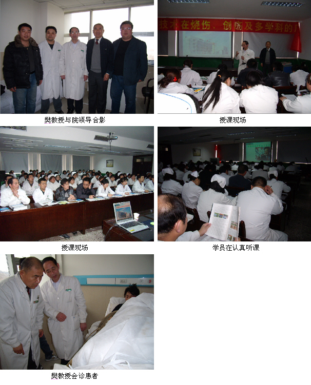 樊教授首先向大家講解了再生醫(yī)療技術(shù)在燒傷、創(chuàng)瘍創(chuàng)面治療時(shí)的換藥技巧及注意事項(xiàng),特別利用臨床大量的病例資料及圖片向大家介紹了再生醫(yī)療技術(shù)在多科室應(yīng)用的先進(jìn)性、實(shí)用性等。大家聽后覺得受益匪淺,表示以后一定要加強(qiáng)學(xué)習(xí)再生醫(yī)學(xué)的理論和多積累臨床經(jīng)驗(yàn),應(yīng)用該項(xiàng)技術(shù)救治更多患者。隨后,樊主任與外科趙衛(wèi)軍主任及部分醫(yī)師對(duì)臨床中經(jīng)常遇到的問題進(jìn)行了交流并在趙衛(wèi)軍主任的陪同下到醫(yī)院病房看望了患者,對(duì)創(chuàng)面換藥進(jìn)行了指導(dǎo),受到了院領(lǐng)導(dǎo)、患者及患者家屬的一致好評(píng)。