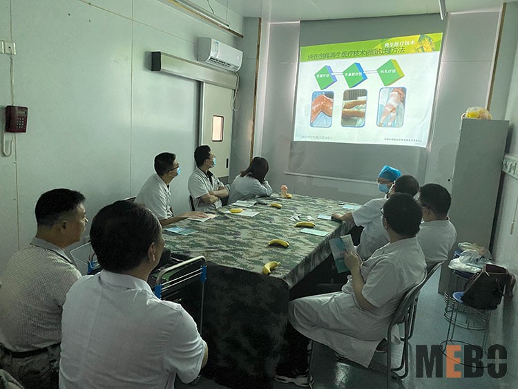 2021年5月28日,中國中西醫(yī)結合學會燒傷專業(yè)委員會醫(yī)療部專家張強主任,受邀來到武警湖北省總醫(yī)院普外科,開展了“再生醫(yī)療技術在肛腸疾病治療中的創(chuàng)新應用”的專題講座。課上張主任同醫(yī)師們講解了再生醫(yī)療技術的作用原理與規(guī)范處理原則,分享了再生醫(yī)療技術在肛腸疾病相關性創(chuàng)瘍和切口感染等難愈性創(chuàng)面治療成功的經(jīng)驗,并同王主任就技術細節(jié)和科室建設作了交流!接下來,張主任受邀繼續(xù)到武昌醫(yī)院內分泌科會診了一例基礎病較多嚴重的壓瘡患者,張主任實操講解與示范創(chuàng)面黑痂及濃性分泌物如何清創(chuàng)、制作油紗、規(guī)范換藥包扎療法。在張主任指導下,護理老師們學到了很多換藥技巧。會診后張主任同黎主任及護理老師深入交流與詳細講解運用再生醫(yī)療技術在臨床中差異化換藥問題,讓大家對技術有了新的認知!