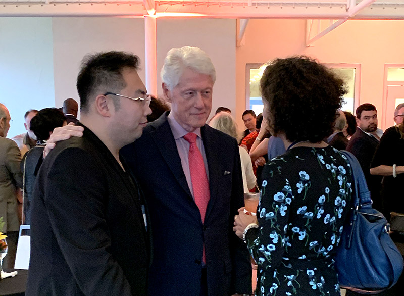 在貴賓招待會上徐鵬主席與克林頓總統(tǒng)就克林頓基金會的全球倡議項(xiàng)目及美寶倡議的最新狀況進(jìn)行了深度交流,對于中國境內(nèi)年初爆發(fā)的新冠病毒疫情也交流了意見。徐鵬表示美寶集團(tuán)針對新冠疫情進(jìn)行了總體部署,除了捐款捐物外,也從國際平臺宣傳像NBA賽場、全明星賽場和時代廣場廣告牌等方面聲援武漢和中國的抗疫工作;從海外籌集防疫物資緊急馳援疫情重災(zāi)區(qū);以及建立官方支持的對接平臺加州抗病毒聯(lián)盟(California Fight Against Coronavirus,CFAC)??肆诸D總統(tǒng)表示新冠病毒疫情不是中國一個國家的事情,也不是一個短期的事件,這會是一個全球性事件,中國之后會在其他國家傳播,我們需要一個長期的應(yīng)對策略,比如一個五年的計劃,比如在新加坡這樣國際性的地方建立一個全球防疫物資調(diào)撥中心,可以隨時統(tǒng)籌全球防疫物資,及時援助發(fā)生疫情的地區(qū)。徐鵬主席提出芝加哥大學(xué)徐鵬智庫開始了一個對應(yīng)疫情的大數(shù)據(jù)項(xiàng)目”測量世界(Measuring The World)”, 通過大數(shù)據(jù)計算產(chǎn)生新冠病毒COVID-19 全球各地爆發(fā)的風(fēng)險預(yù)測分布圖,幫助各地提前防備。