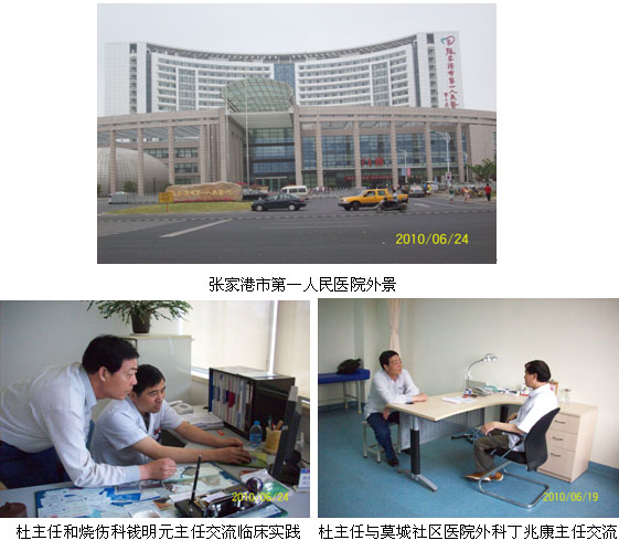 中國中西醫(yī)結(jié)合學(xué)會燒傷專業(yè)委員會常委、中國燒傷創(chuàng)瘍雜志常務(wù)編委、北京燒傷創(chuàng)瘍研究所臨床部杜福勤主任和學(xué)會駐江蘇辦事處周園園同志于2010年6月18日~25日,一同走訪了無錫市濱湖區(qū)人民醫(yī)院外科、錫山區(qū)東亭社區(qū)醫(yī)院、宜興市人民醫(yī)院燒傷科、蘇州市蘇大附屬醫(yī)院整形科、蘇州市立醫(yī)院北區(qū)(蘇州市三院)燒傷科、常熟市莫城社區(qū)醫(yī)院、張家港市第一人民醫(yī)院燒傷科,同時走訪了兩家醫(yī)藥公司和五家終端大藥房。