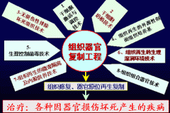 我們對干細胞的研究方法剛才己講過了,不是在體外而是在體內(nèi)或在組織上,并且是原位,只有原位培植干細胞才更直接,更實際。在經(jīng)歷了多年的研宄和實踐之后,規(guī)劃出了由八大技術(shù)工程共同完成的人類組織器官再生復(fù)制的程序圖,今天僅是初步公布。因為目前國內(nèi)外的研究尚未進行到這一步,故可視為是里程碑式的發(fā)展。這個程序圖在夏威夷國際會上僅展示了一遍,代表們均認同其創(chuàng)新性。(附原位干細胞組織器官再生復(fù)制技術(shù)組合圖)