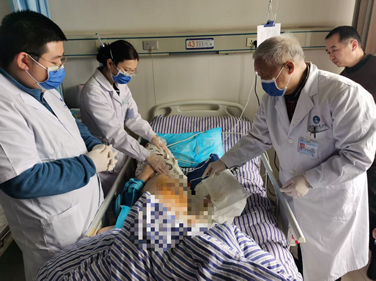 2025年2月19日,《中國燒傷創(chuàng)瘍雜志》編委、燒傷創(chuàng)瘍再生醫(yī)療技術(shù)臨床專家張強,到訪國藥葛洲壩中心醫(yī)院醫(yī)養(yǎng)結(jié)合病區(qū)及老年醫(yī)學(xué)病區(qū),會診三例高齡壓瘡患者創(chuàng)面及一例輸液外漏致皮膚壞死創(chuàng)面患者。張主任對創(chuàng)面應(yīng)用再生技術(shù)換藥效果予以肯定,與吳護士長,趙護士長等對患者營養(yǎng)、創(chuàng)面處理小技巧做了有效溝通,得到醫(yī)護人員高度認可。