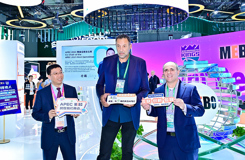 薩克拉門托國(guó)王隊(duì)運(yùn)營(yíng)總裁阮賀喬 (John Rinehart ) 以及NBA名人堂、薩克拉門托國(guó)王隊(duì)球星弗拉德·迪瓦茨(Vlade Divac)還專程到訪美寶展臺(tái),全程打卡,品Safeway美食、試IMEBO產(chǎn)品,還特意品嘗了美寶APEC專供香油,可以喝的香油;迪瓦茨還在美寶迷你球場(chǎng)秀球技,APEC專區(qū)為APEC2023送上祝福;還進(jìn)入了天貓國(guó)際在美寶展臺(tái)進(jìn)行的北美特大食品零售巨頭Safeway的品牌專場(chǎng)直播間進(jìn)行了2米16版的“最高”直播!新奇元素,空前人氣,爭(zhēng)相合影,引爆了美寶展臺(tái),帶給了進(jìn)博獨(dú)一無二的新鮮氣息。
