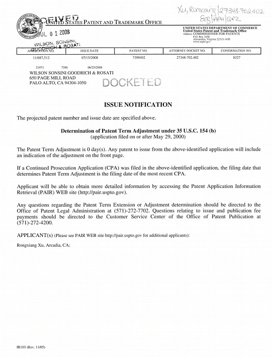 申請(qǐng)人可登陸專利申請(qǐng)信息修改網(wǎng)站 (http://pair.uspto.gov)獲取更多信息。