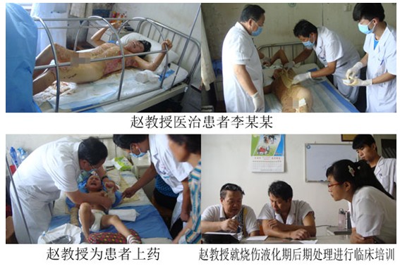 北京燒傷創(chuàng)瘍研究所趙瑞慶教授第一時(shí)間趕到了該醫(yī)院,在院領(lǐng)導(dǎo)的協(xié)調(diào)下,積極參與了搶救工作。截止到8月20日,使用再生復(fù)原技術(shù)治療兩例大面積燒傷病人,安全度過了休克期、感染期,平穩(wěn)過渡到創(chuàng)面修復(fù)階段。趙瑞慶教授利用星期天早會(huì)間隙時(shí)間,就如何正確認(rèn)識(shí)創(chuàng)面液化物,用創(chuàng)瘍貼保護(hù)創(chuàng)面軟薄膜、如何減少使用抗生素用量進(jìn)行了專題培訓(xùn)。趙教授在菏澤創(chuàng)傷醫(yī)院搶救病人期間和該院鄭連榮、楊鳳民院長就北京燒傷創(chuàng)瘍研究所與菏澤創(chuàng)傷醫(yī)院持久長期技術(shù)合作達(dá)成了一致意見。