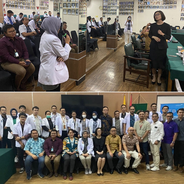 隨后,美寶國際團(tuán)隊轉(zhuǎn)戰(zhàn)fatmawati醫(yī)院,繼續(xù)其學(xué)術(shù)交流之旅。在這里,教學(xué)科室責(zé)任人Dr Witra Irfan的熱烈歡迎與徐巍巍主任的深入講解相得益彰,針對日常護(hù)理中的難題,再生醫(yī)療技術(shù)的規(guī)范應(yīng)用與創(chuàng)面管理要點(diǎn)得到了詳盡闡述,贏得了現(xiàn)場醫(yī)護(hù)人員的一致好評。Dr Ayudiya對再生醫(yī)療技術(shù)的認(rèn)可與期待,進(jìn)一步凸顯了其在印尼醫(yī)療界的重要地位及廣闊前景。