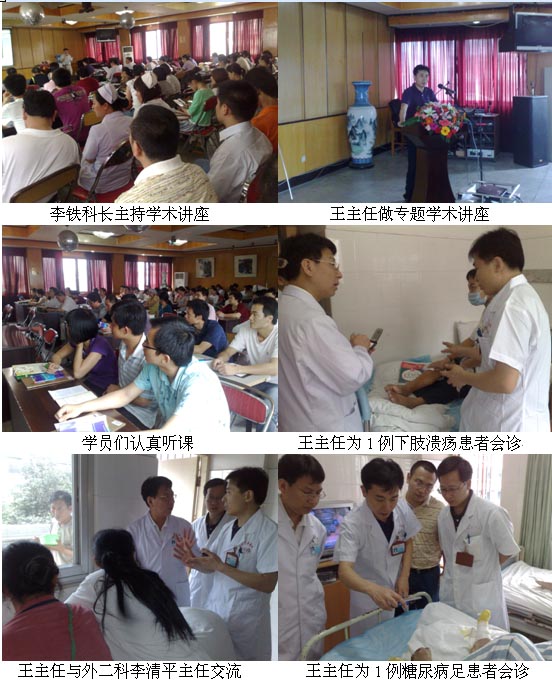 專(zhuān)題學(xué)術(shù)講座于當(dāng)日的下午3:00開(kāi)始,王洪生主任結(jié)合了大量的臨床病例圖片,針對(duì)不同深度的燒傷創(chuàng)面及各類(lèi)難愈性創(chuàng)傷、潰瘍創(chuàng)面的規(guī)范化處理方法與技巧、注意事項(xiàng)等進(jìn)行了細(xì)致地講解?;顒?dòng)持續(xù)到下午17時(shí)30分才結(jié)束,學(xué)術(shù)講座結(jié)束后,該院醫(yī)務(wù)科主任又邀請(qǐng)王主任為幾例難愈性創(chuàng)瘍創(chuàng)面的患者會(huì)診,在外二科主任李清平副主任醫(yī)師的陪同下,王主任深入外二病區(qū),為在該病區(qū)治療的幾例糖尿病足、褥瘡、下肢潰瘍等患者進(jìn)行了會(huì)診和臨床指導(dǎo)。