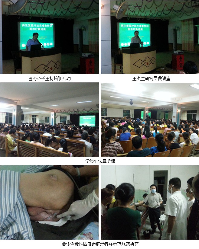 當(dāng)日晚上19時(shí)30分,玉林市第三人民醫(yī)院綜合樓2樓會(huì)議室座無(wú)虛席,全院各科室除值班醫(yī)護(hù)人員外,共有200多人到會(huì)聆聽(tīng)王主任的專(zhuān)題講座,該醫(yī)院主管副院長(zhǎng)主持了學(xué)術(shù)講座,醫(yī)務(wù)科植科長(zhǎng)在王主任講座結(jié)束后做了總結(jié)發(fā)言,會(huì)議中,王主任首先向與會(huì)專(zhuān)家及醫(yī)護(hù)人員介紹了我國(guó)著名生命科學(xué)家、醫(yī)學(xué)家、人體再生復(fù)原科學(xué)的創(chuàng)立者、再生醫(yī)療技術(shù)的發(fā)明人徐榮祥教授近期在人體再生復(fù)原科學(xué)及再生醫(yī)學(xué)研究最新進(jìn)展,而后結(jié)合了大量的臨床病例圖片,重點(diǎn)講述了再生復(fù)原療法對(duì)骨外露、鋼板外漏、肌腱外露、皮膚軟組織撕脫傷、骨科創(chuàng)瘍、糖尿病足、動(dòng)脈閉塞癥、褥瘡等深度創(chuàng)面及難愈性創(chuàng)面治療新進(jìn)展及規(guī)范化處理方法與技巧、注意事項(xiàng)等,學(xué)術(shù)講座一直持續(xù)到晚上21時(shí)30分才結(jié)束。