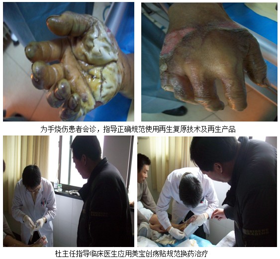 交流中杜主任感謝以上醫(yī)院的院長(zhǎng)、科室主任多年來推廣和支持再生復(fù)原技術(shù)所做的努力和支持,希望今后進(jìn)一步加強(qiáng)協(xié)作。走訪期間杜主任為臨床醫(yī)生示范換藥,指導(dǎo)臨床醫(yī)生正確規(guī)范的應(yīng)用再生復(fù)原技術(shù)和再生產(chǎn)品,為廣大燒傷、創(chuàng)傷、潰瘍患者解除痛苦作出努力,造福廣大燒傷、創(chuàng)傷、潰瘍患者。