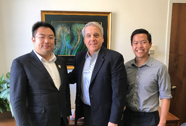 2018年9月18日,美寶集團(tuán)董事局主席徐鵬應(yīng)邀正式訪問加州理工學(xué)院,陪同訪問的有加州理工學(xué)院校友會董事Anthony Chong博士。為了讓徐總對加州理工有個全面深入的了解,校方為徐總的到訪做了精心準(zhǔn)備,上午下午共安排8場會議,分別與副校長教務(wù)長David Tirrell、副校長Brian Lee、副校長Valerie Otten以及生物和生物工程學(xué)系、化學(xué)和化工學(xué)系、工程和應(yīng)用科學(xué)系、人文和社會科學(xué)系的系主任們以及有關(guān)專家進(jìn)行了深度交流,雙方都對對方有了比較清楚的了解并初步探討了在科研、教育、國際交流與拓展、學(xué)生創(chuàng)新創(chuàng)業(yè)等方面的合作意向。徐總對加州理工將于2020年落成的專門的神經(jīng)科學(xué)研究所、生物和生物工程學(xué)系的大腦-機器接口(大腦意識控制機器手)以及化學(xué)和化工學(xué)系夏皮羅教授獨特的單細(xì)胞超聲技術(shù)非常感興趣,表示后續(xù)將更加關(guān)注加州理工這幾方面的研究和合作機會。這次一整天的訪問節(jié)奏緊湊,富有成效,為下一步雙方的合作打下了堅實的基礎(chǔ)。